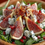 Verleihen Sie Ihrem Salat den letzten Schliff mit einer ansprechenden Dekoration. Bestreuen Sie ihn kurz vor dem Servieren mit einigen zusätzlichen, leicht gerösteten Walnusshälften und ein paar frischen Minzblättchen. Eine dünne Schicht Puderzucker über den Feigen kann ebenfalls einen süßen Akzent setzen. Achten Sie darauf, dass die Dekoration die natürlichen Farben der Zutaten hervorhebt und den Salat noch appetitlicher erscheinen lässt.