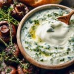 Eine cremige Knoblauchsoße verfeinert mit frischen Kräutern, perfekt als Dip oder Beilage zu vielen Gerichten. Schnell zubereitet und voller Geschmack.