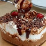 Dieses Dessert ist bereits ein Highlight für sich, aber es lässt sich hervorragend mit einer kleinen Kugel Vanilleeis oder einem Klecks Sahne servieren. Ein kleiner Espresso danach rundet das Geschmackserlebnis perfekt ab. Auch ein Glas Sekt passt wunderbar dazu.