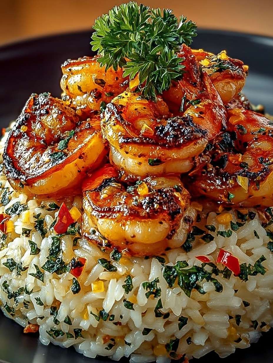 Stellen Sie sich ein Gericht vor, das die Einfachheit von perfekt gekochtem Reis mit der unwiderstehlichen Würze von Garnelen in Knoblauchbutter vereint.