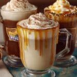 Die Dekoration eines HARRY POTTER’S BUTTERBIERS kann sehr einfach und doch wirkungsvoll sein. Eine leichte Wolke aus frisch geschlagener Sahne, die wie der Schaum auf einem Zaubertrank aussieht, ist ein Muss. Bestreuen Sie diese Sahnehaube großzügig mit einer Prise Zimt oder sogar mit etwas Kakaopulver für eine tiefere Farbe. Ein kleiner Karamell-Twist, der über den Rand des Glases drapiert wird, verleiht dem Ganzen eine extra festliche Note.
