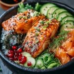 Diese knusprigen Lachs-Bowls sind ein fantastisches Fundament, das sich mit wenigen Handgriffen in unzählige köstliche Varianten verwandeln lässt, um jedem Geschmack und jeder Ernährungsform gerecht zu werden. Ihrer Kreativität sind kaum Grenzen gesetzt, wenn es darum geht, dieses Gericht aufzupeppen und neu zu interpretieren. Probieren Sie doch einmal eine dieser aufregenden Abwandlungen aus.