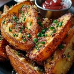 Crispy oven-baked potato wedges seasoned to perfection. A simple and delicious side dish that pairs well with any meal.