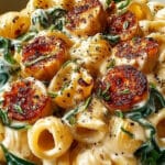 • Die Pastasorte macht’s: Wähle eine Pasta, die gut Sauce aufnehmen kann, wie Penne, Rigatoni oder Fussili. Ihre Rillen und Formen halten die cremige Sauce optimal fest.