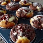 These delightful Schoko Käsekuchen Muffins combine rich chocolate cake with a creamy cheesecake swirl. Perfect for any occasion, they offer a delicious balance of flavors and textures in every bite.