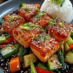 Die Aromen Asiens in Ihrer eigenen Küche – das ist der Traum, der mit diesem Gericht Wirklichkeit wird. Stell dir vor, wie der zarte Lachs auf der Zunge zergeht, umhüllt von einer süßlich-herzhaften Teriyaki-Glasur, während knackiges Gemüse für die perfekte Textur sorgt.