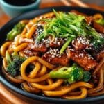 A quick and flavorful Teriyaki Udon Noodle dish featuring tender chicken, crisp vegetables, and savory udon noodles. This recipe is perfect for a weeknight meal, delivering a taste of Japan with minimal effort.