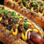 Die scharfe Variante: Füge der Käse-Gemüse-Mischung fein gehackte Jalapeños oder eine Prise Cayennepfeffer hinzu. Dies verleiht den überbackenen Hot Dogs eine angenehme Schärfe, die perfekt mit dem geschmolzenen Käse harmoniert und für ein aufregendes Geschmackserlebnis sorgt.