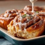 Und voilà! Deine Himmlisch Saftigen Zimtschnecken sind fertig. Am besten schmecken sie, wenn sie noch lauwarm sind und die Glasur wunderbar cremig ist. Serviere sie sofort und genieße jeden Bissen dieser süßen Köstlichkeit.