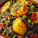 This vibrant vegan potato curry with spinach and peas is a flavorful and satisfying main course. It’s quick to prepare and perfect for a healthy weeknight meal.
