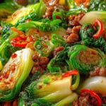 This spicy Chinese cabbage stir-fry is a quick and flavorful meal, perfect for a busy weeknight. Featuring tender chicken and crisp vegetables, it’s a delightful journey of Asian flavors.