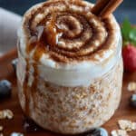 Serviere die Zimtschnecke Oats in kleinen Einmachgläsern oder Brunchschalen für einen rustikalen Charme. Wenn du Gäste erwartest, kannst du sie in hübschen Auflaufförmchen oder Gläsern schichten, vielleicht mit einer Schicht Joghurt oder Apfelmus dazwischen.